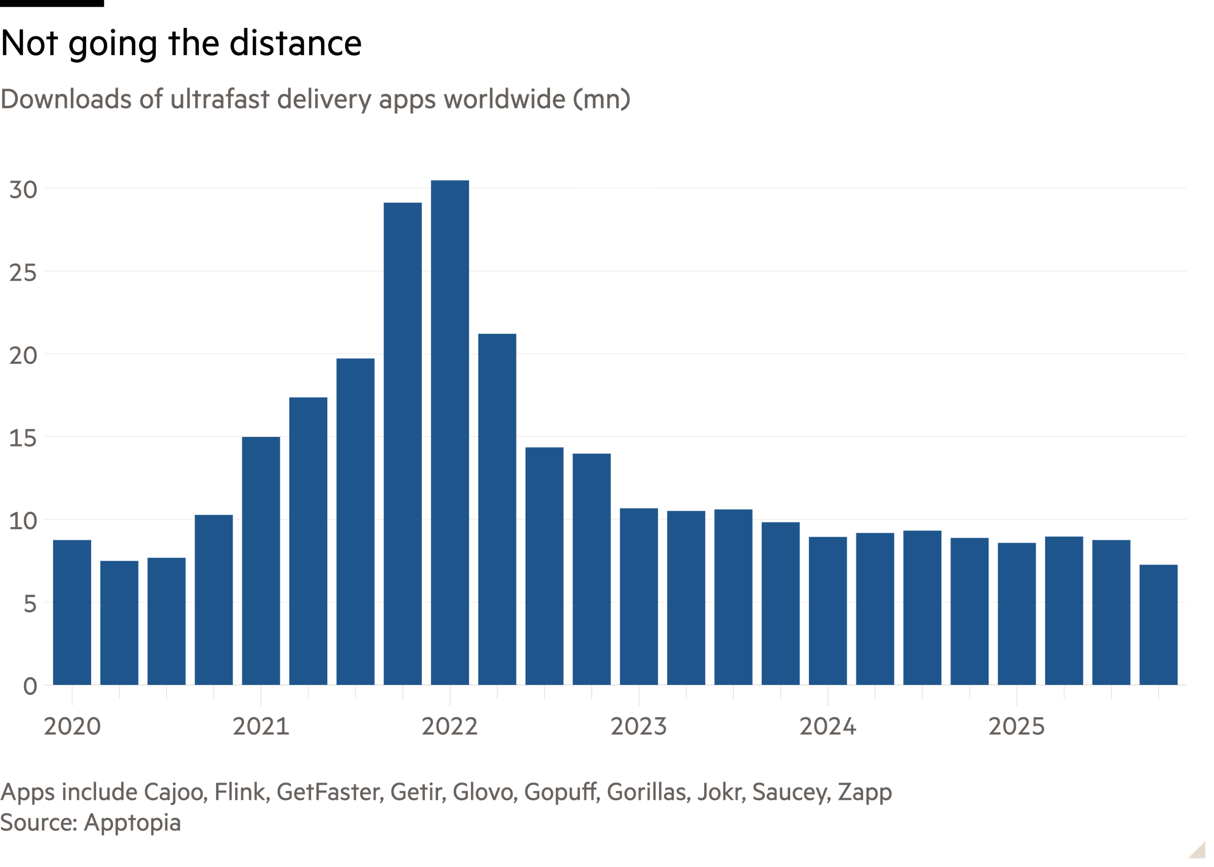 然而,好景不长。过去三年,这个行业已大幅崩塌。Gorillas和Weezy被Getir收购,随后Getir又撤出美国和欧洲市场,转而将重心回到其土耳其本土市场。同样,Jokr也撤回巴西。Buyk和Fridge No More则彻底消失。