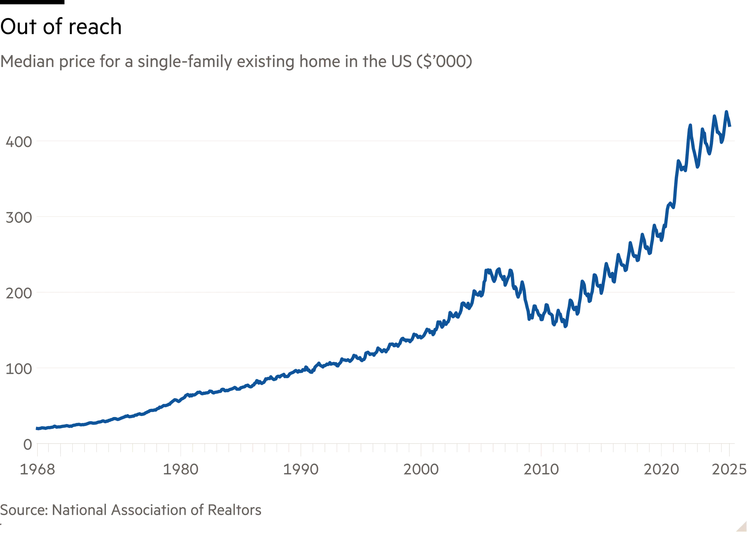 唐纳德•特朗普(Donald Trump)希望让住房再次变得可负担。过去一年里,美国总统及其政府曾尝试多种策略:敦促美联储进一步降息,提议允许购房者以加密货币作为按揭抵押品,并提出取消房屋出售资本利得税的想法。