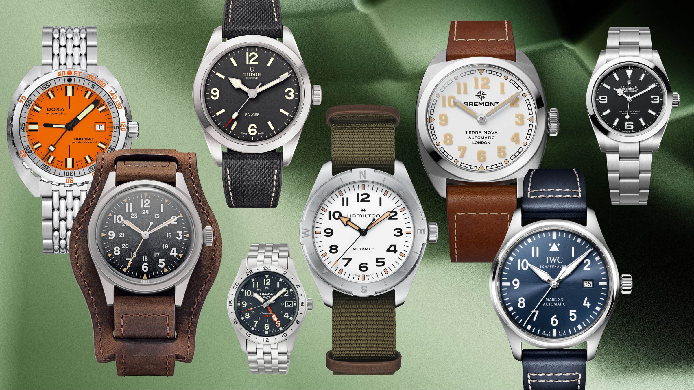 “野战表”源自二战期间确立的一套标准:当时英国战争部要求腕表必须极其精准、防水、坚固、易读、具夜光功能,并配备至少15颗宝石的机芯。最终,共有12家公司参与制造这批备受追捧的“肮脏十二”(Dirty Dozen)。今年,劳力士(Rolex)、万国表(IWC Schaffhausen)、Doxa、多莎(Doxa)、Bremont、精工(Seiko)和帝舵(Tudor)等品牌都推出了对这一风格的新演绎,那种“随处可去、无所不能”的冒险精神又回到了空气中。尼克•福尔克斯