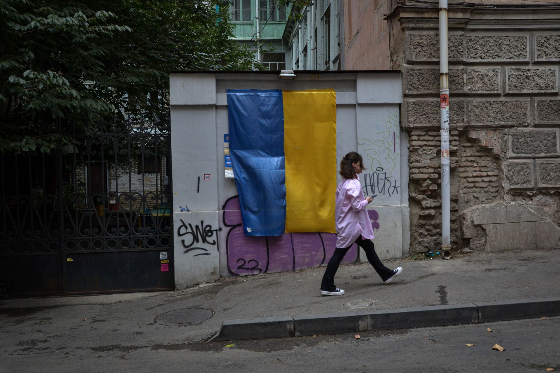 一天晚上,在回家的路上,我经过一家很受欢迎的餐厅,门口钉着一块牌子,上面写着:不认为俄罗斯是占领军、不认为弗拉基米尔•普京(Vladimir Putin)是战犯的顾客将被拒绝进入。上面的字被太阳晒得褪色得厉害,几乎看不清了,但我知道上面写的是什么。自二月份以来,这样的标语就一直贴在第比利斯的门窗上。