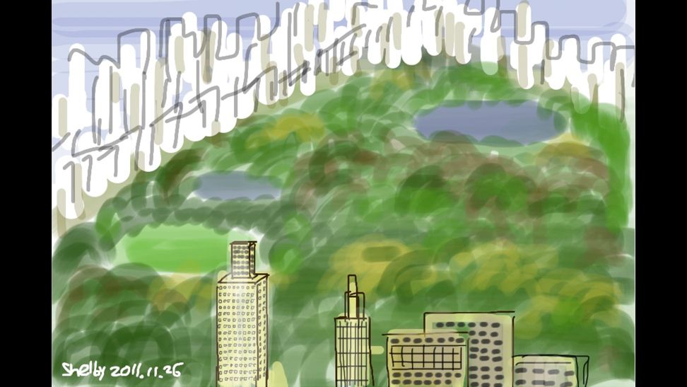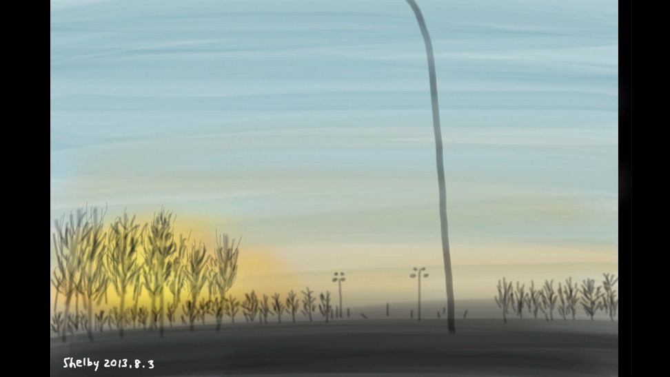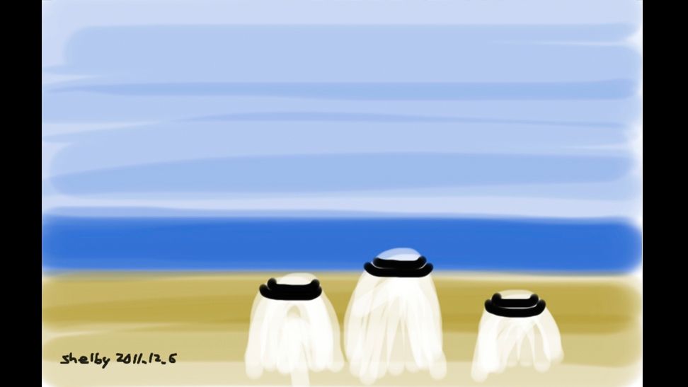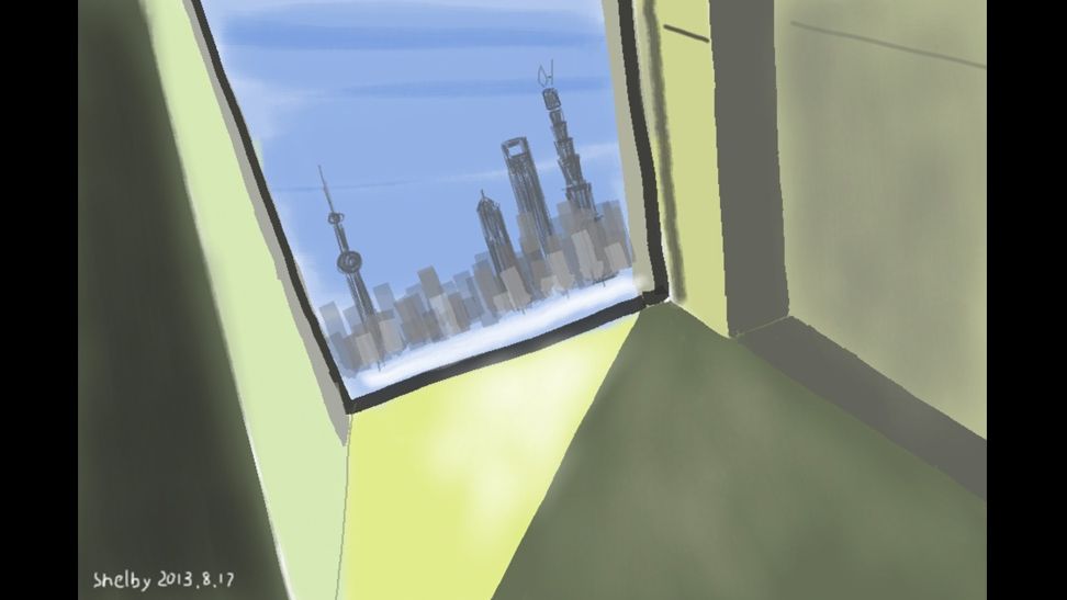 从南京机场去新街口,在颠簸的车上完成了这幅海上明月。