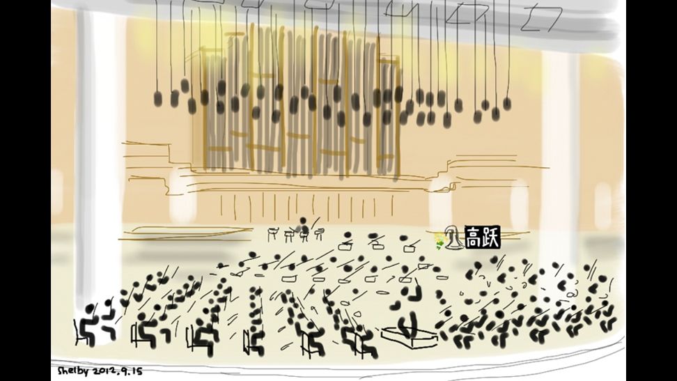 爱乐乐团2012-13演出季以一场严肃沉重的音乐会隆重开幕。余隆指挥乐团倾心奉献了一场绝无仅有的缺席大号的"残缺版"柴可夫斯基第五交响曲,以纪念几天前病逝的首席大号高跃先生。舞台上,他的大号伫立在鲜花之中,气场超强。