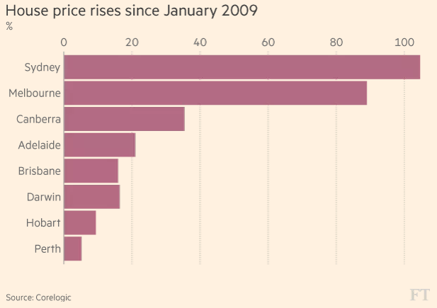 新南威尔士州的做法,是一连串针对外国(主要是manbetx3.0 )购房客的税收与限制措施中的最新举动。人们指责外国购房客助推了房地产繁荣。在这场繁荣中,悉尼房价自2009年以来已翻了一番。