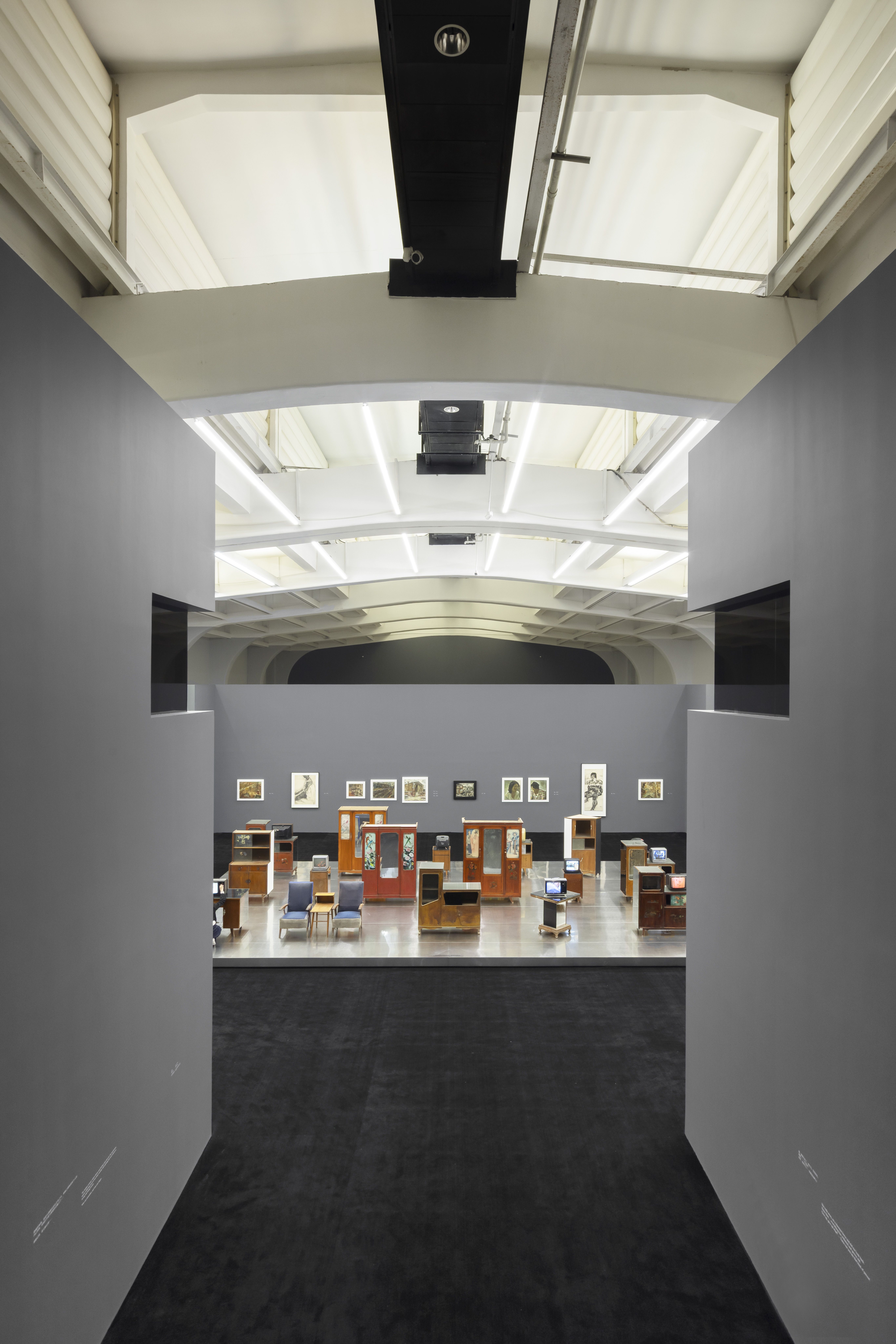 另外,这次为15屏的影片制作的音乐也是独立随机播放的。有时一幕片子的时长是20分钟,但配乐可能长达45分钟,画面和声音并不是严格对应,而是各放各的。目的就是让声画不断碰撞,形成多维的效果,营造出一种迷宫般的感受。