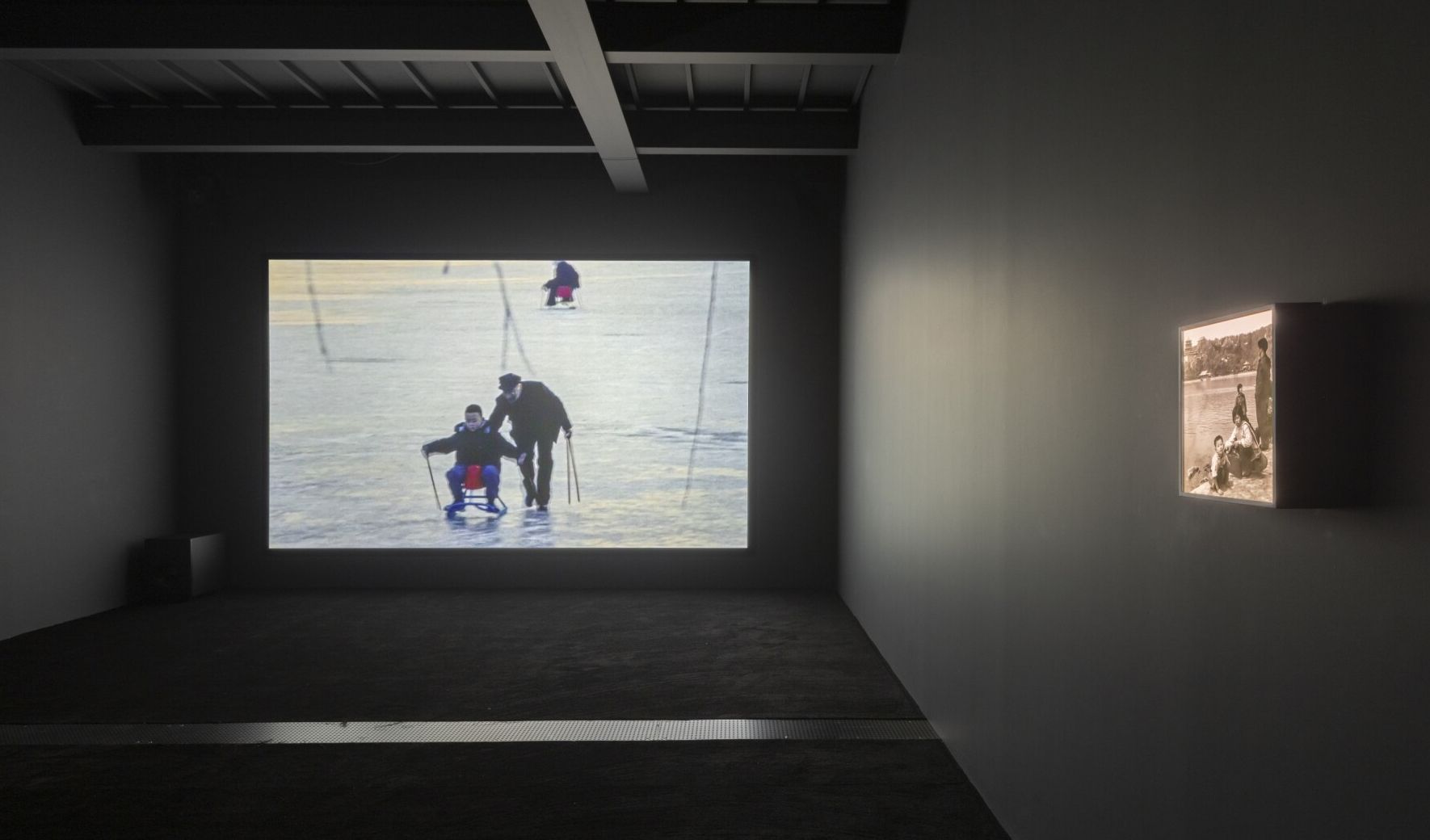 《香河》(静帧),2016-2025,15频黑白有声数码影像装置,图片由杨福东工作室提供2,